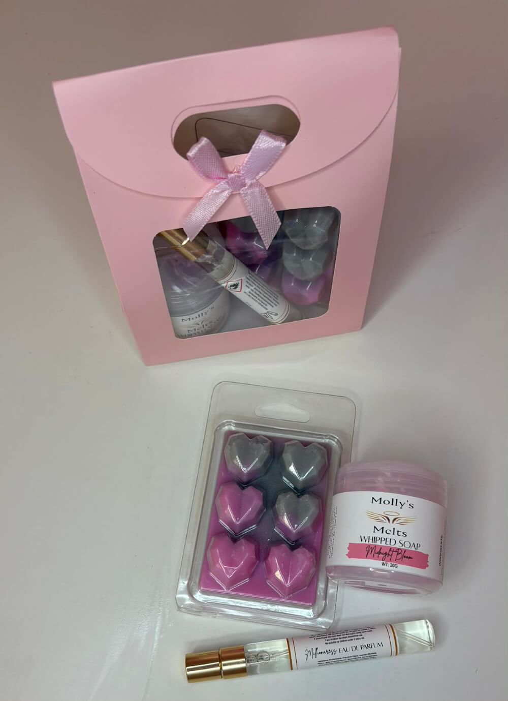Beautifully presented in a blush pink gift bag with a delicate ribbon bow, this set is ready to gift — no wrapping needed.